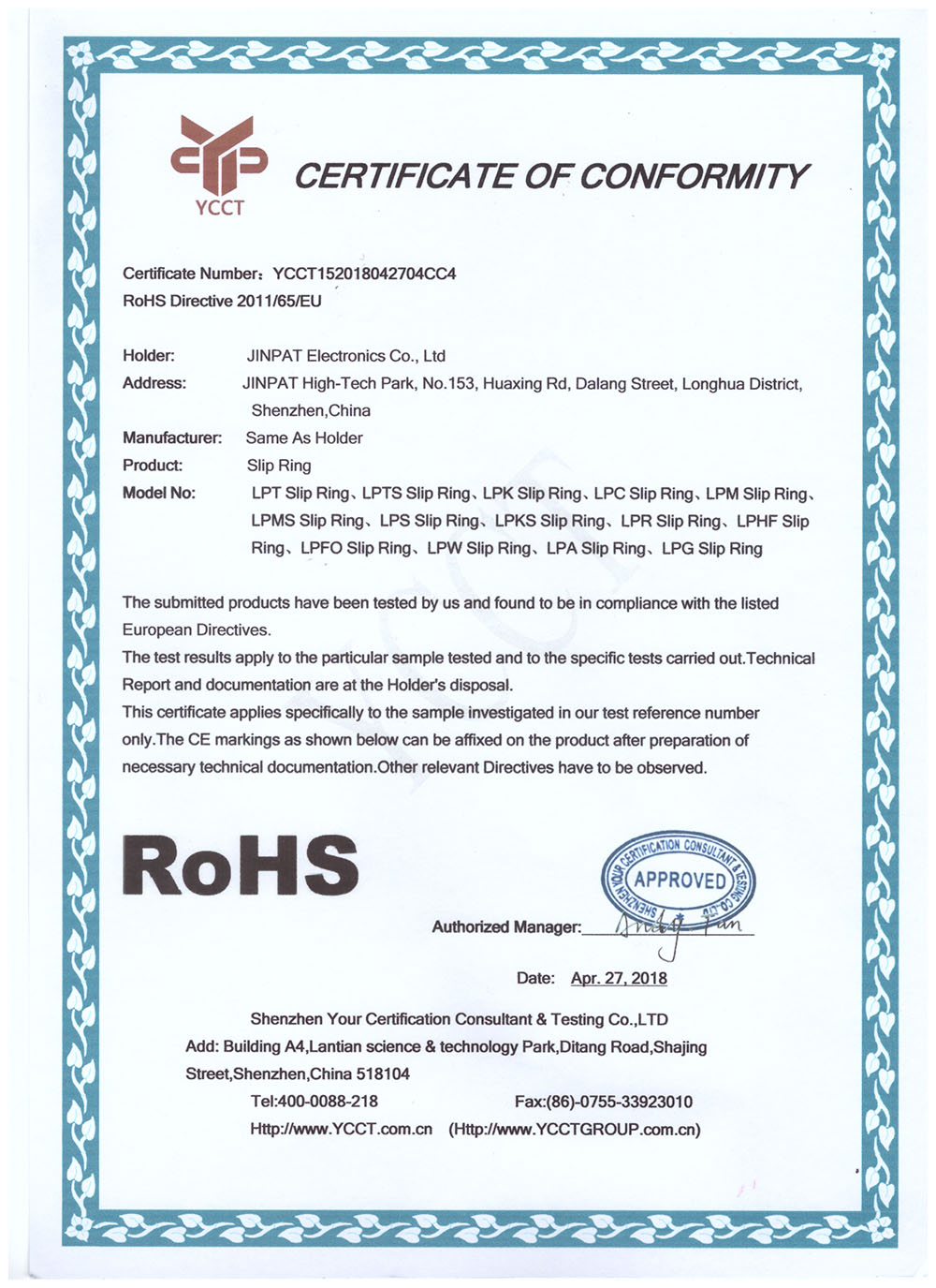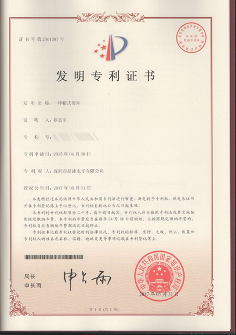晶沛通過(guò)了歐盟CE認(rèn)證老骥伏枥、FCC認(rèn)證右顾左盼、SGS認(rèn)證飞鸿踏雪、BV“船級(jí)社”認(rèn)證、防爆認(rèn)證等多項(xiàng)認(rèn)證,生產(chǎn)的導(dǎo)電滑環(huán)都符合RoHS環(huán)保要求,先后被授予“國(guó)家高新技術(shù)企業(yè)”稱(chēng)號(hào),目前已獲得45項(xiàng)專(zhuān)利,其中發(fā)明專(zhuān)利6項(xiàng)。